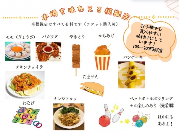 今年も、留学生の出身国の家庭料理や、レクリエーションなどの模擬店を行います!