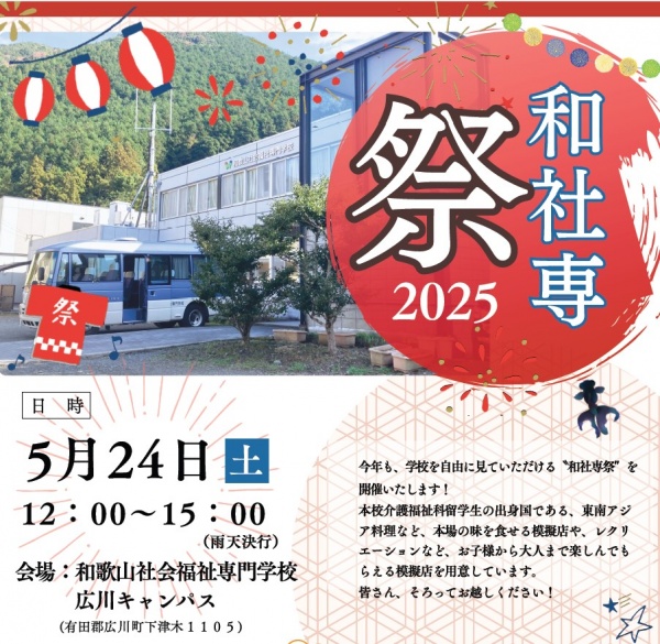 内容: 学校案内、和社専祭参加、入試・奨学金制度説明 など