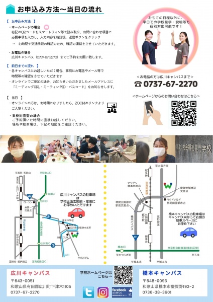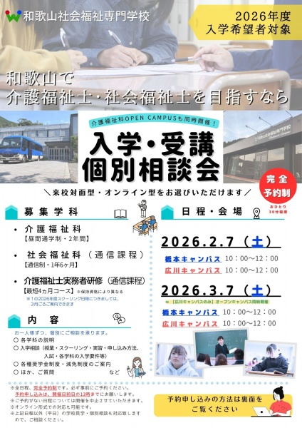 広川キャンパスと橋本キャンパスで入学・受講個別相談会をおこないます。